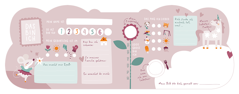 Ein toller Erinnerungsschatz. In diesem Album können sich all deine Freundinnen und Freunde verewigen. Fotos einkleben, Bilder malen, einen Fingerabdruck hinterlassen und lustige Fragen beantworten. Und du natürlich auch! Ein Geburtstagskalender ist ebenfalls dabei, damit du immer weißt, wann deine liebsten Spielkameraden Geburtstag haben! Jetzt aber ran an die Stifte, die witzigen Fabelwesen und Tiere warten schon!