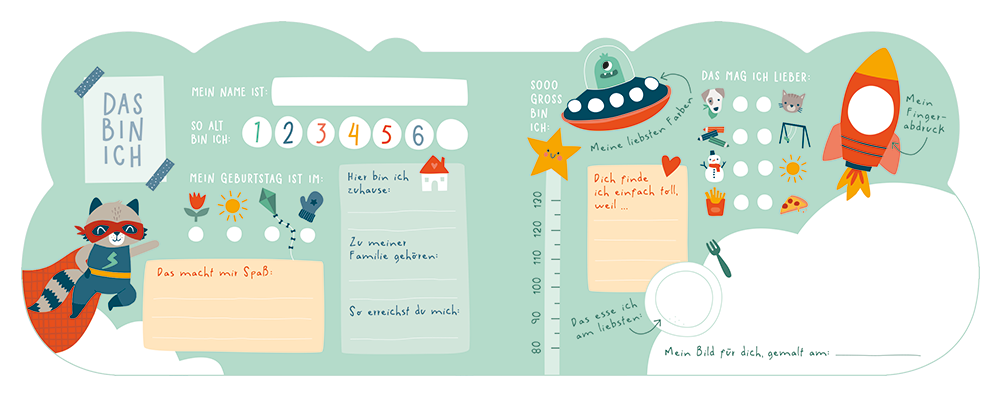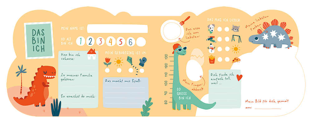 Ein toller Erinnerungsschatz. In diesem Album können sich all deine Freundinnen und Freunde verewigen. Fotos einkleben, Bilder malen, einen Fingerabdruck hinterlassen und lustige Fragen beantworten. Und du natürlich auch! Ein Geburtstagskalender ist ebenfalls dabei, damit du immer weißt, wann deine liebsten Spielkameraden Geburtstag haben! Jetzt aber ran an die Stifte, die witzigen Fabelwesen und Tiere warten schon!