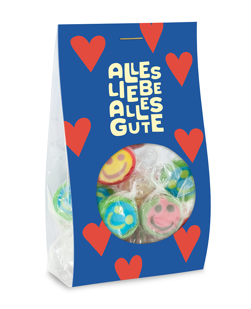 Was dich hier so happy anlächelt, sind unsere fruchtig-fröhlichen Gute Laune Bonbons. Take a smile und nasch dich glücklich!