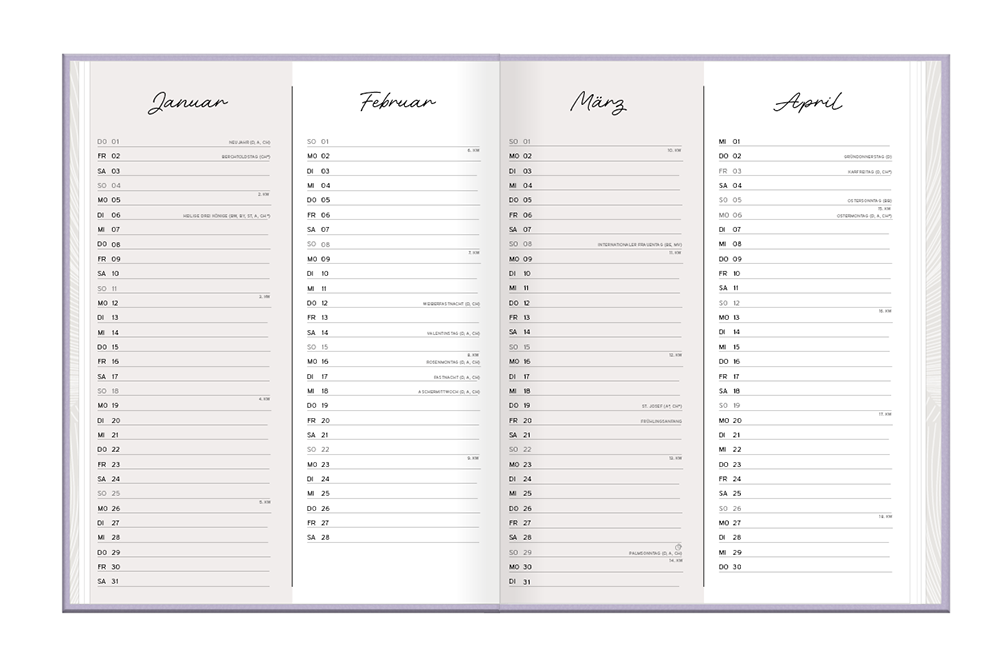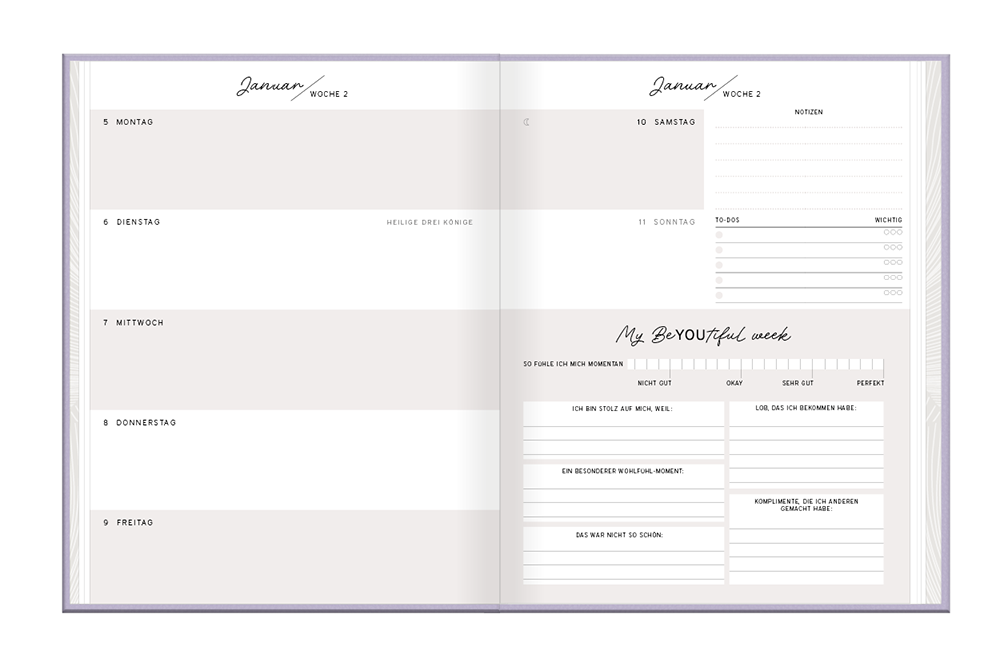 Achtsam durch das Jahr und jeden Monat eine neue Challenge? Gewohnheiten tracken oder Gefühlslagen beleuchten? Mit dem Lady-Terminplaner lassen sich Woche für Woche kleine und große Momente dokumentieren.