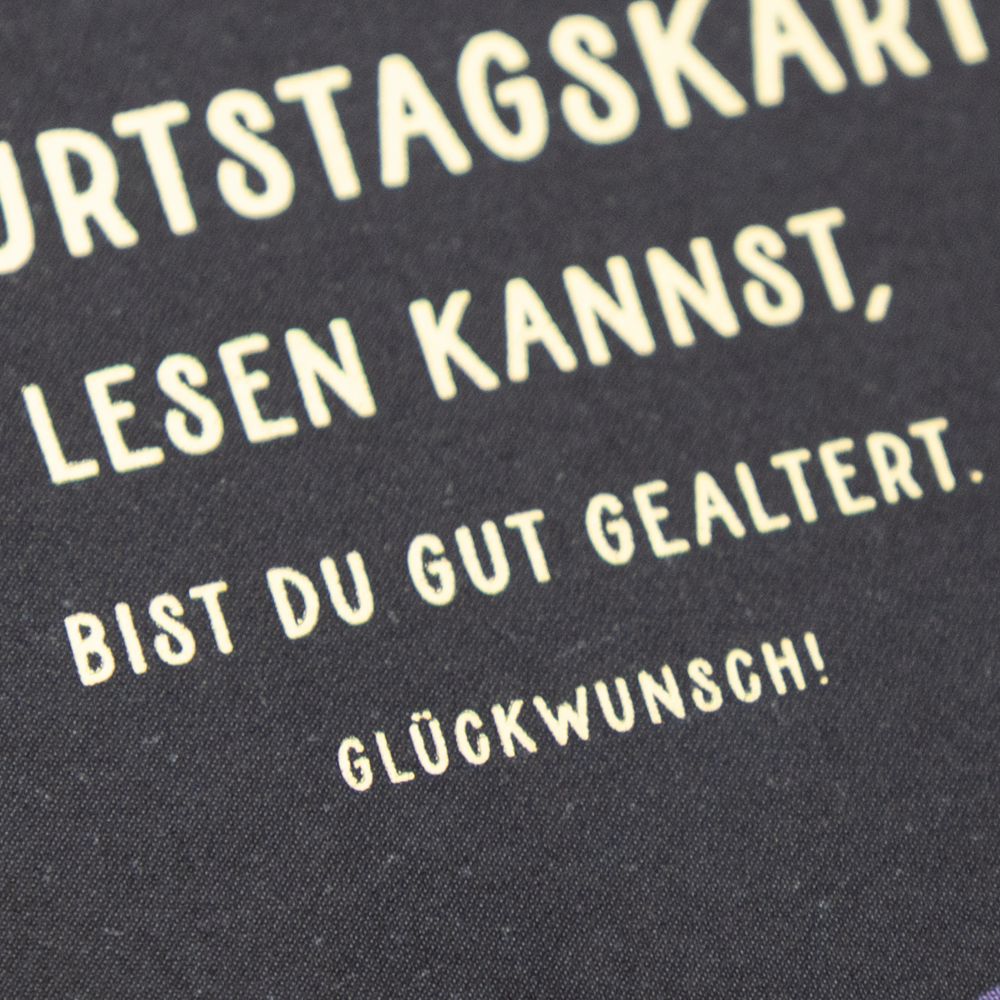 Wenn du die letzte Zeile auf dieser Geburtstagskarte lesen kannst, bist du gut gealtert. Glückwunsch!