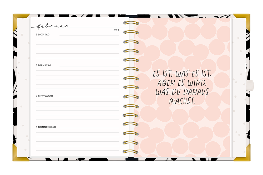 Her mit den Dates, Terminen und To-dos-das Vollschreiben dieses Premium-Terminplaners ist nämlich das reinste Vergnügen! Er ist nicht nur schick, sondern auch ein sensationelles Organisationstalent. Mit vielen Extras managst du 365 Tage lang auf glanzvolle Art den Alltag.
