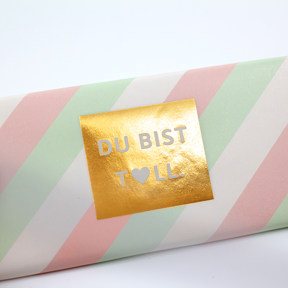 Mit diesen kleinen Happymachern im Mini-Format könnt ihr euren Lieben auf schokoladige Weise den Tag versüßen! Zum Blumenstrauß, zum Geschenk oder einfach als kleine Aufmerksamkeit hinterlassen die goldveredelten Schokoladentafeln immer einen glänzenden Eindruck.