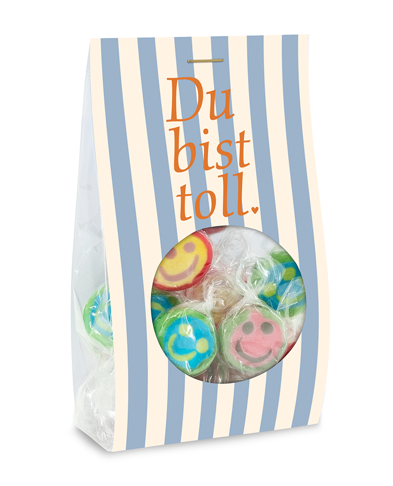 Was dich hier so happy anlächelt, sind unsere fruchtig-fröhlichen Gute Laune Bonbons. Take a smile und nasch dich glücklich!