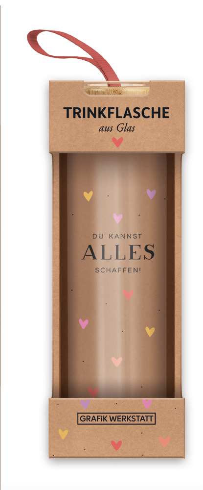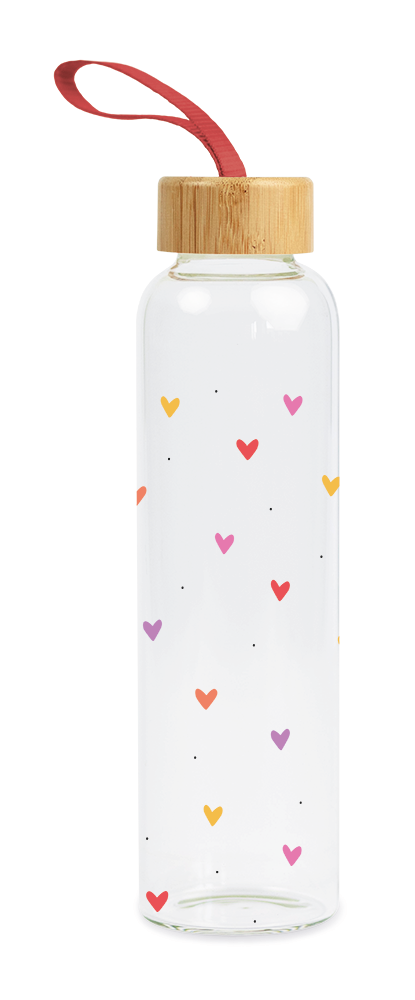 Die praktische Trinkflasche für unterwegs, beim Sport oder im Büro. Das liebevoll gestaltete Design macht dich und deinen neuen Begleiter zum echten Hingucker. So wird dein tägliches Wasser trinken zum stylischen Highlight und du bist durch die Benutzung der wiederverwendbaren Glasflasche freundlich zur Umwelt!