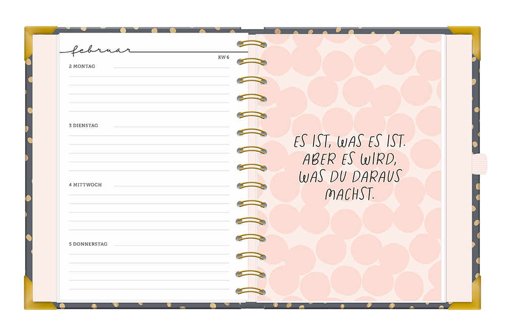 Her mit den Dates, Terminen und To-dos-das Vollschreiben dieses Premium-Terminplaners ist nämlich das reinste Vergnügen! Er ist nicht nur schick, sondern auch ein sensationelles Organisationstalent. Mit vielen Extras managst du 365 Tage lang auf glanzvolle Art den Alltag.