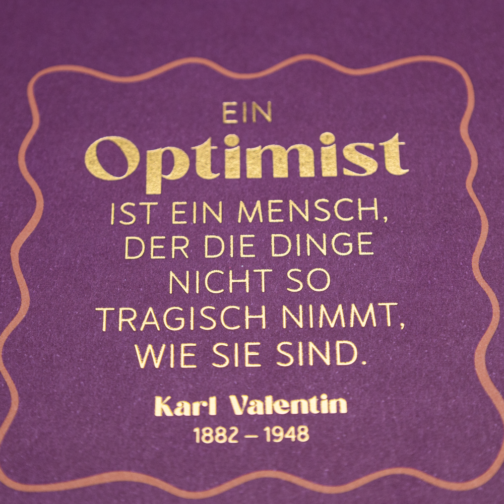 Berühmte Ikonen aus Kunst und Kultur haben uns für die Serie inspiriert. Ob organische Formen wie bei Matisse, selbstbewusste Farben wie in einem Gemälde von Frida Kahlo oder grafischer Bauhaus-Stil. Hier ist für alle Kunstliebhaber etwas dabei. Größen wie John Lennon, Mark Twain oder Coco Chanel begeistern mit ihren Lebensweisheiten, und unsere Karten feiern die Vielfältigkeit und Schönheit der Sprache.
