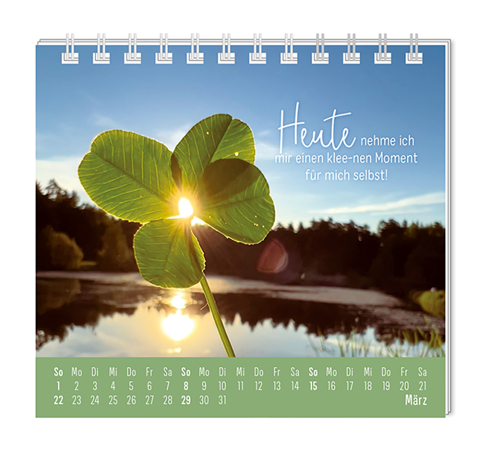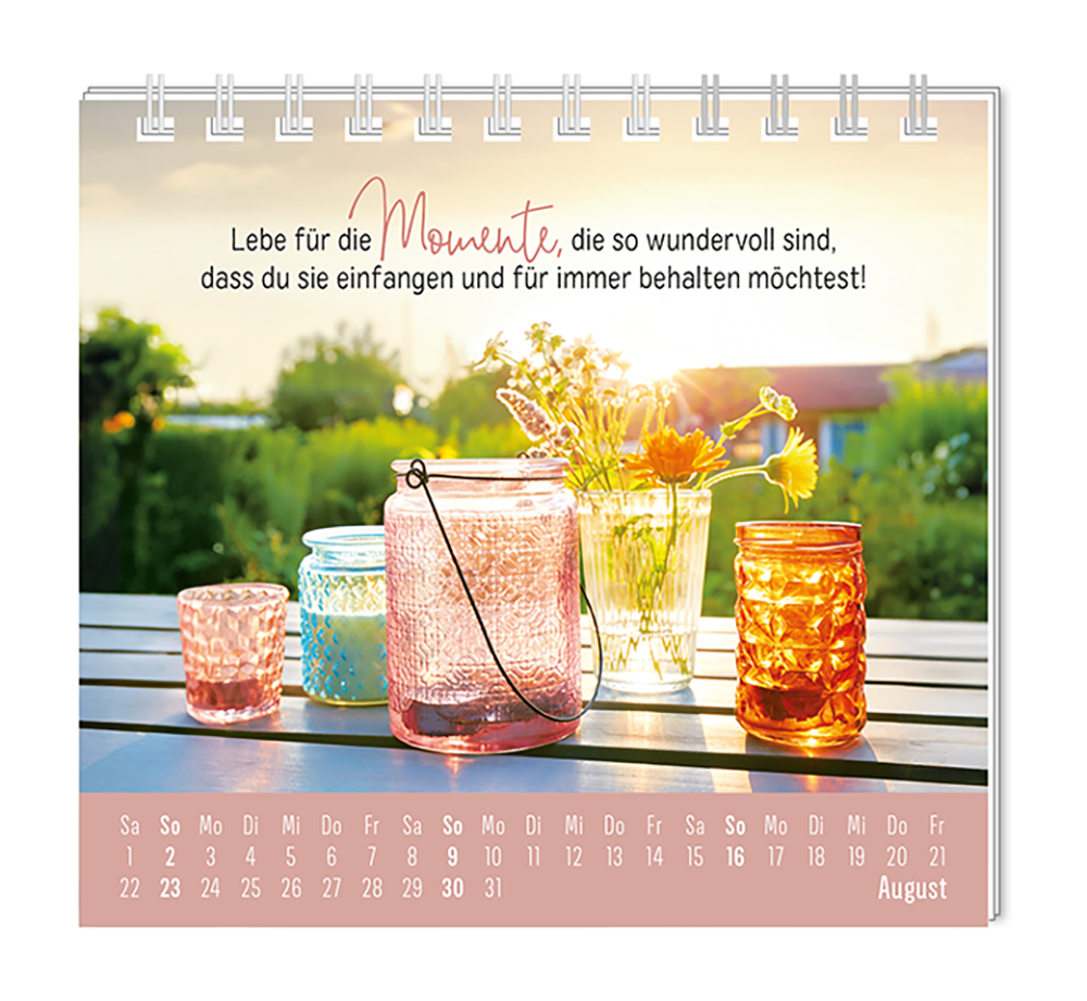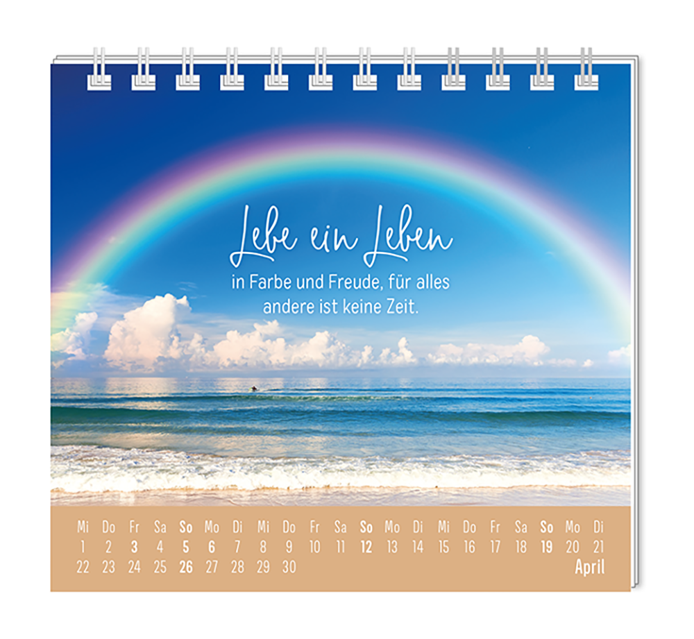Dieser kleine Tischkalender, versprüht Monat für Monat ganz viel Lebens- und Farbenfreude. Ob Vintage oder Wortschätzchen – jeder von unseren Mini-Kalender schenkt eine Extraportion Glück. Inklusive einer Jahresübersicht und der wichtigsten Feier- und Festtage.