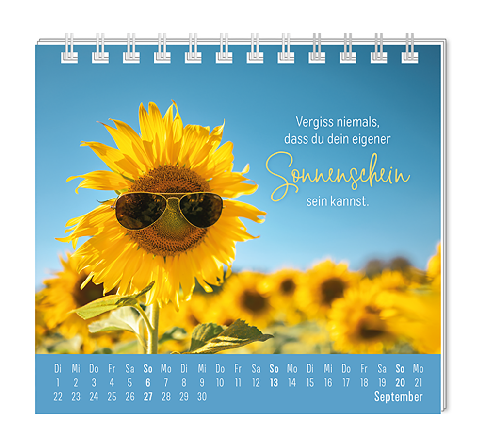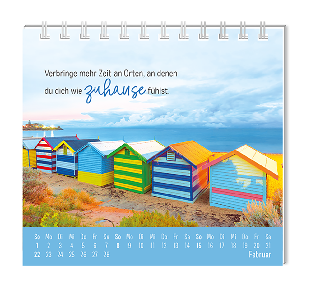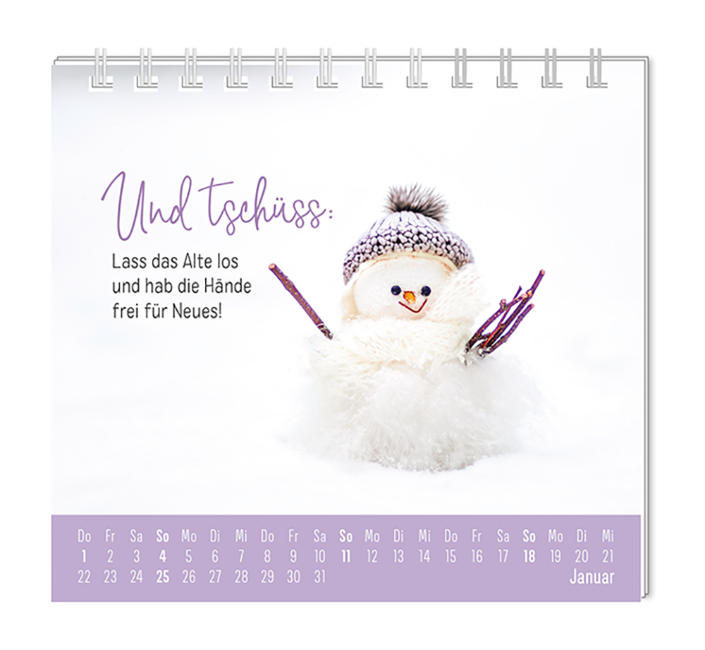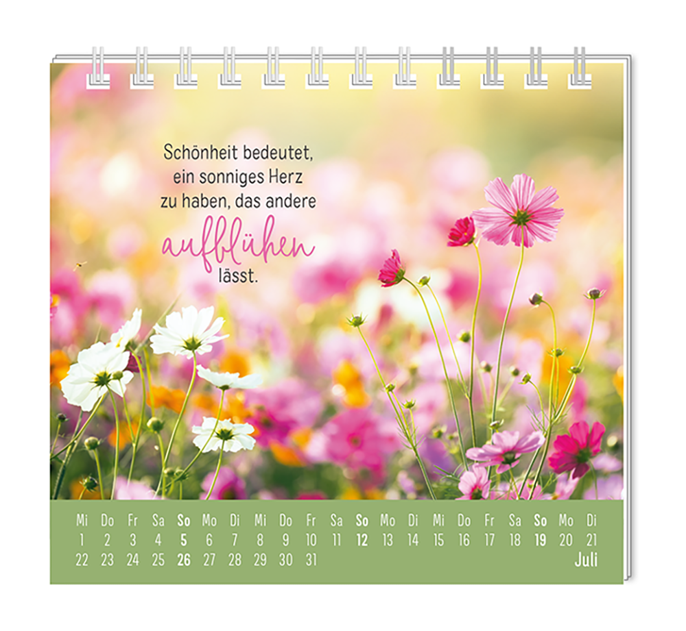Dieser kleine Tischkalender, versprüht Monat für Monat ganz viel Lebens- und Farbenfreude. Ob Vintage oder Wortschätzchen – jeder von unseren Mini-Kalender schenkt eine Extraportion Glück. Inklusive einer Jahresübersicht und der wichtigsten Feier- und Festtage.