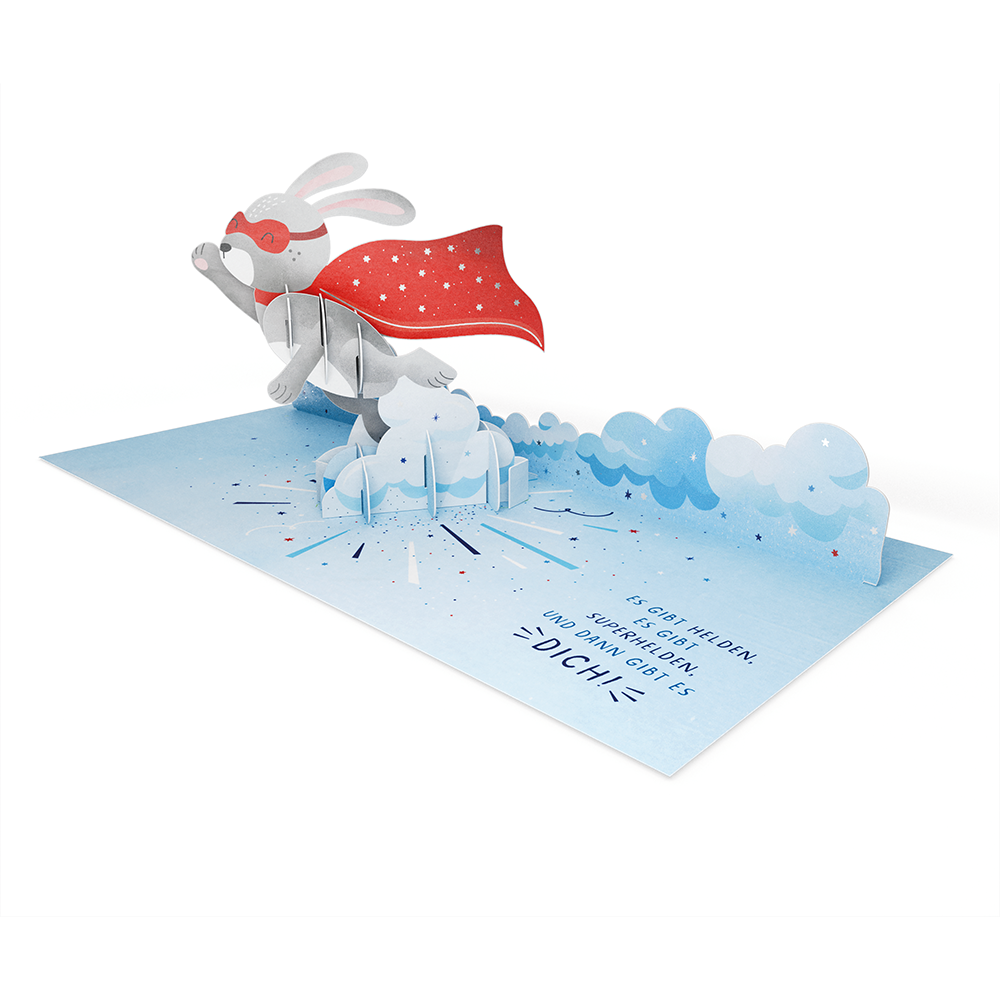 Eine einzigartige 3D-Doppelkarte mit besonderem Überraschungseffekt. Aufklappen, staunen und entdecken.