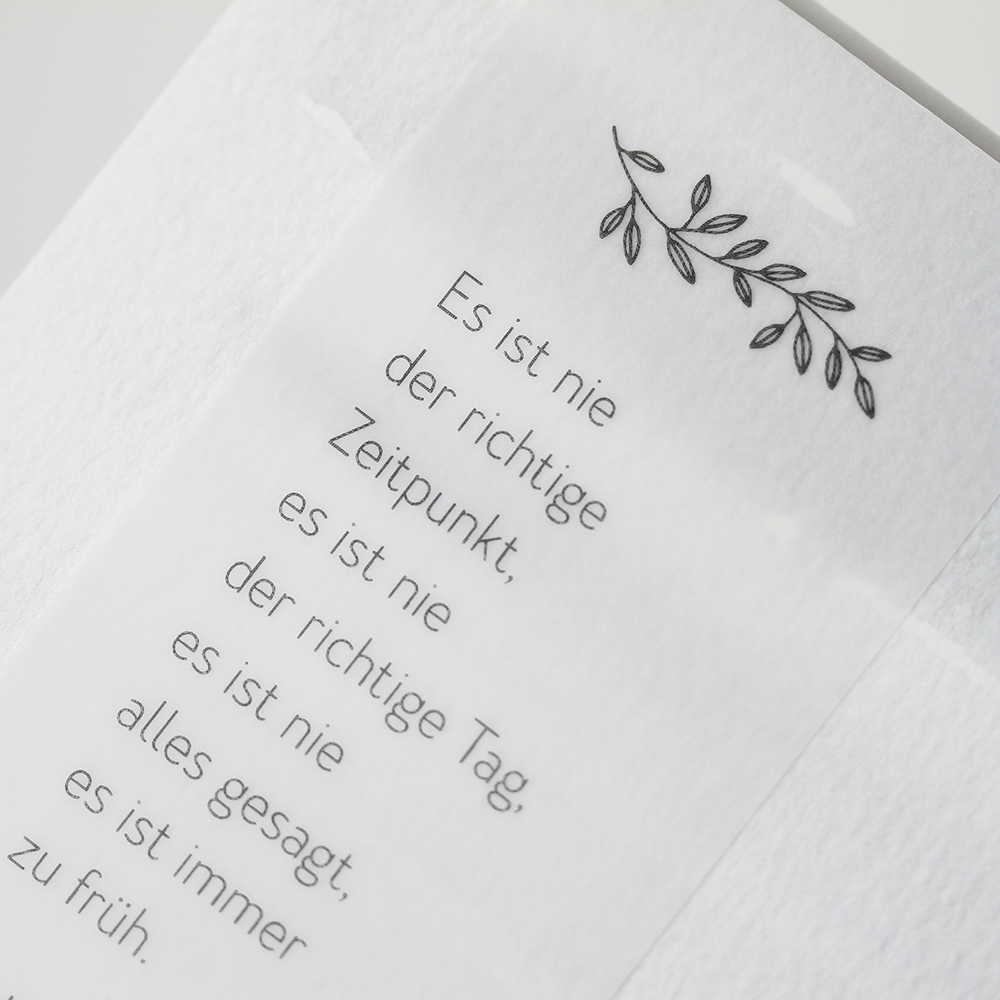 Auf einfühlsame Weise Trost spenden und Anteil nehmen. Unsere Trauer Karten drücken mit liebevoll gewählten Worten, einer dezenten Gestaltung, filigranen Illustrationen und besonderen Veredelungen aufrichtiges Mitgefühl aus.