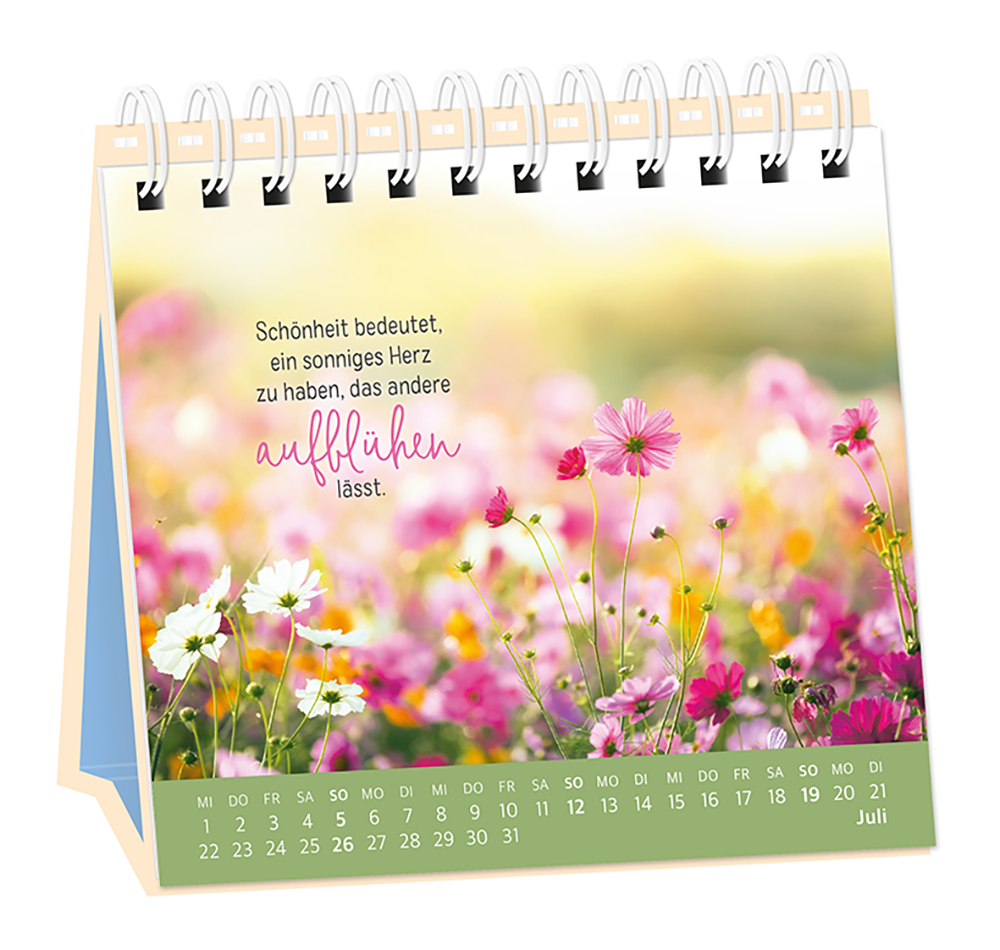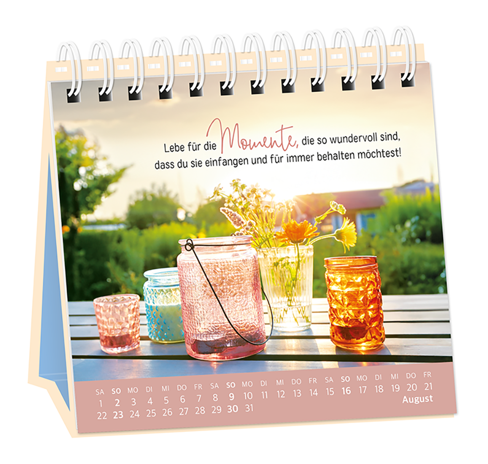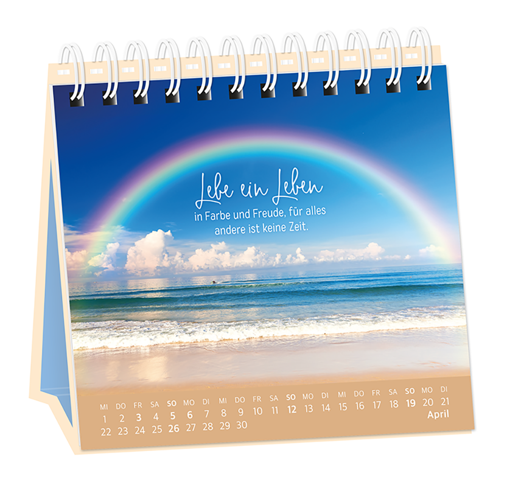 Der Tischkalender versprüht Monat für Monat ganz viel Lebens- und Farbenfreude. Inklusive einer Jahresübersicht und der wichtigsten Feier- und Festtage.