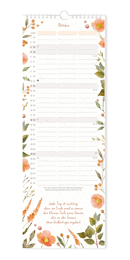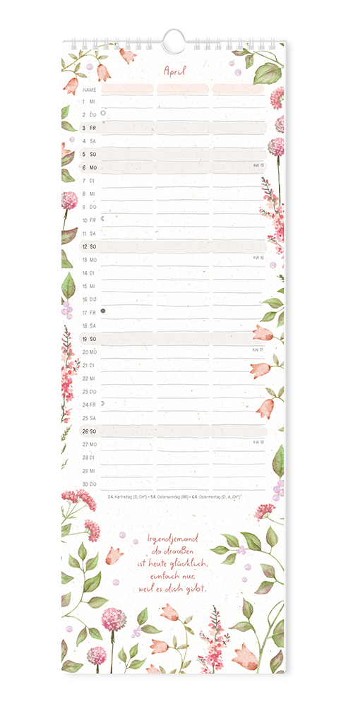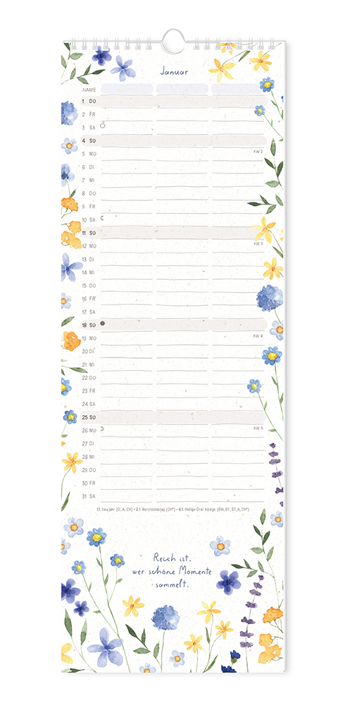 Mit diesem Planer organisiert sich das Zusammenleben zu zweit leichter: Jeder Partner bzw. Mitbewohner hat seine eigene Spalte für persönliche Eintragungen. Eine weitere Spalte bietet Platz für gemeinsame Termine und Unternehmungen.