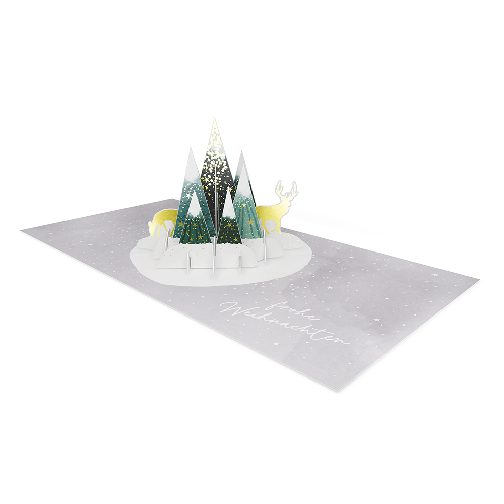 Eine einzigartige 3D-Doppelkarte mit besonderem Überraschungseffekt. Aufklappen, staunen und entdecken.
