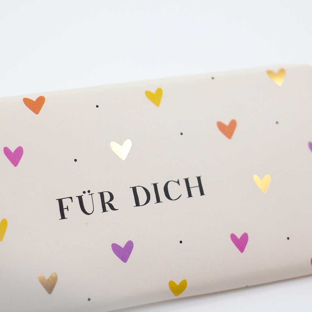 Mit diesen kleinen Happymachern im Mini-Format könnt ihr euren Lieben auf schokoladige Weise den Tag versüßen! Zum Blumenstrauß, zum Geschenk oder einfach als kleine Aufmerksamkeit hinterlassen die goldveredelten Schokoladentafeln immer einen glänzenden Eindruck.