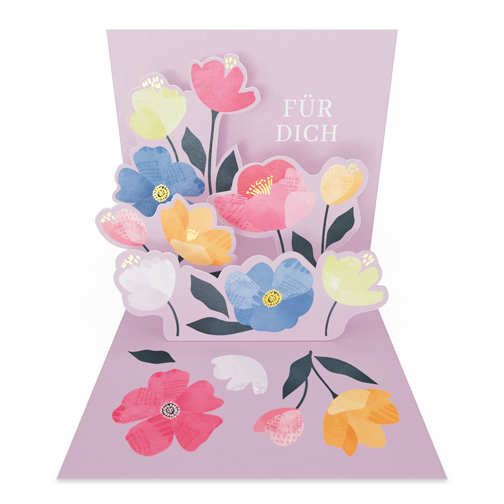 Eine einzigartige 3D-Mini Doppelkarte mit besonderem Überraschungseffekt. Aufklappen, staunen und entdecken.