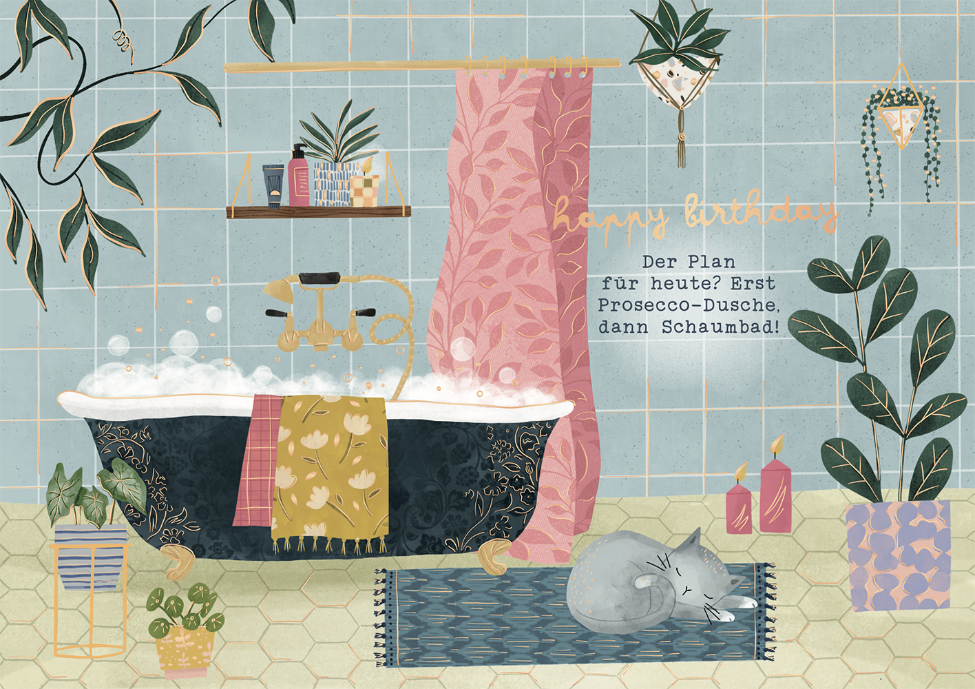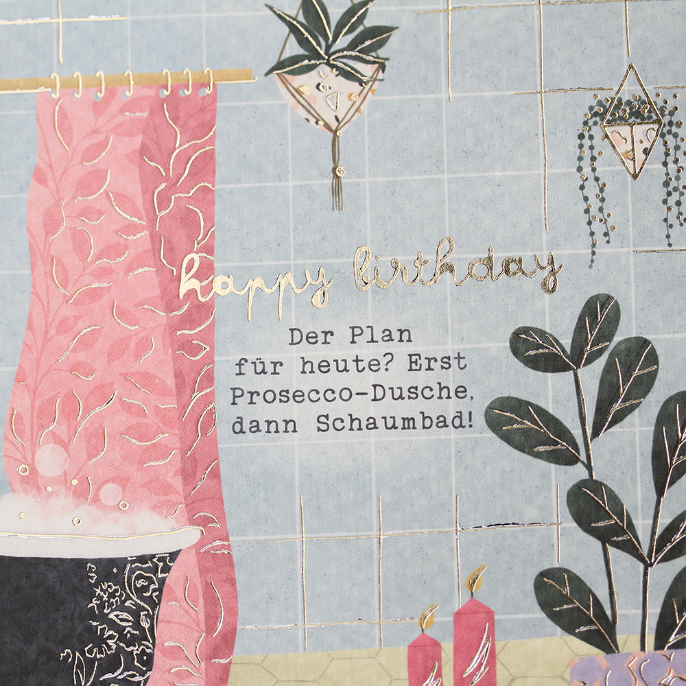 happy birthday - Der Plan für heute? Erst Prosecco-Dusche, dann Schaumbad!