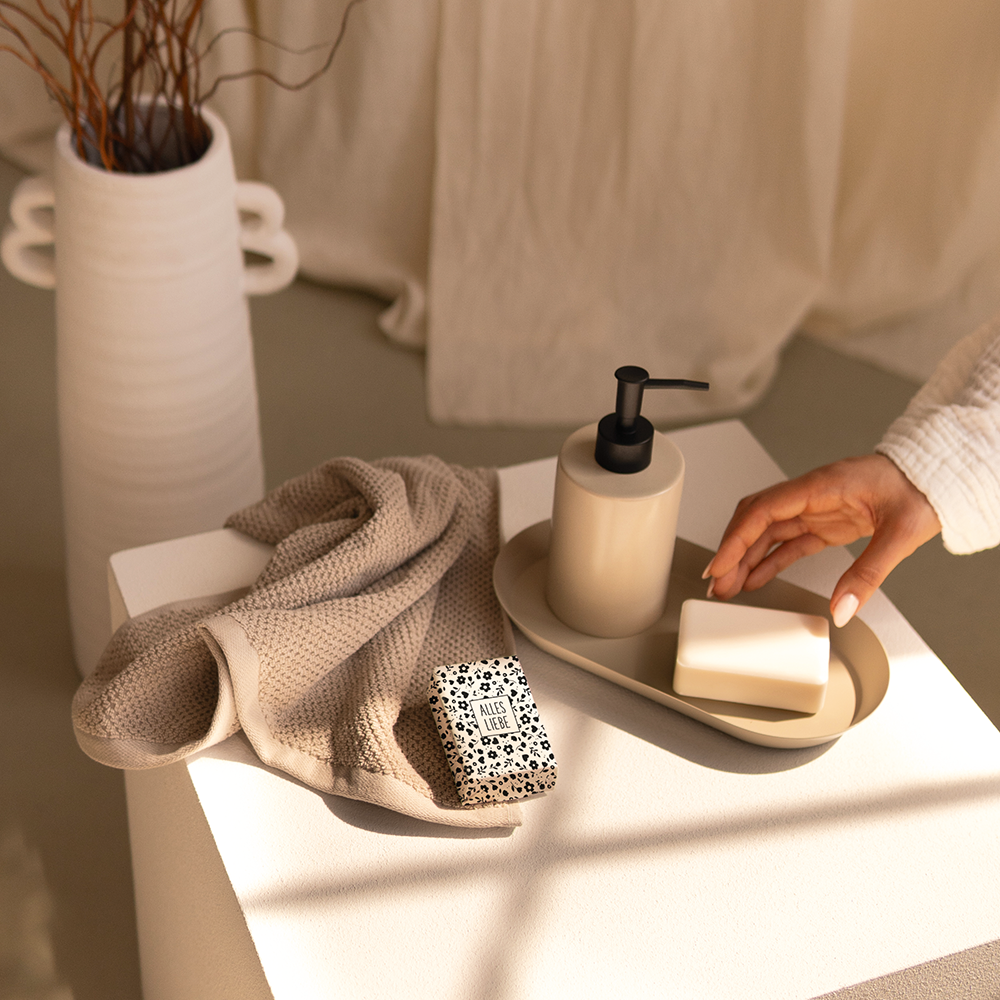 Handseife - Ihr sucht ein liebevoll verpacktes Mitbringsel mit Pflege-Faktor? Unsere Handseife ziert ein hochwertiger Papiereinschlag in wunderschönen Design. Beim Auspacken lädt der Duft von Honig und Rosmarin zum Träumen ein. Die schöne Seife ist mit Olivenöl angereichert und daher besonders feuchtigkeitsspendend.