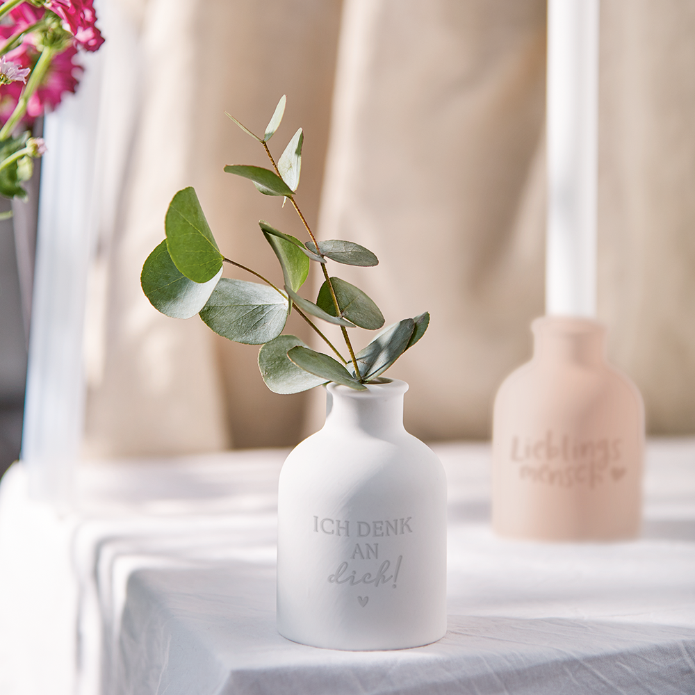 Blumenduft oder Kerzenschein? Dieses wundervolle Keramikstück kann beides. Als Vase oder Kerzenhalter verwendbar und mit feiner Gravur veredelt, wird es schnell zur neuen Lieblingsdeko. Das zeitlos schöne Design fügt sich stilvoll und elegant in jedes Interieur, für duftende Momente & leuchtende Augenblicke.