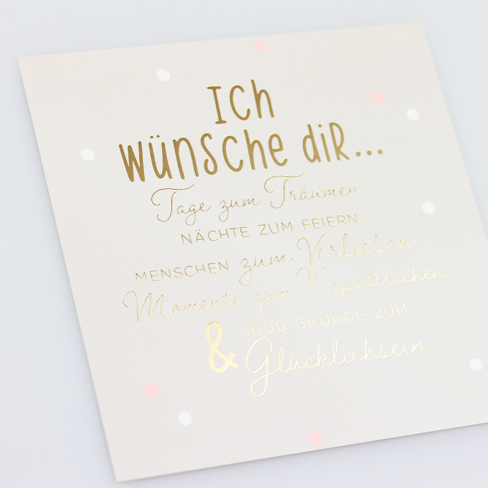 Ich wünsche dir...Tage zum Träumen, Nächte zum Feiern, Menschen zum verlieben, Momente zum Kaputtlachen, & 1000 Gründe zum Glücklichsein.