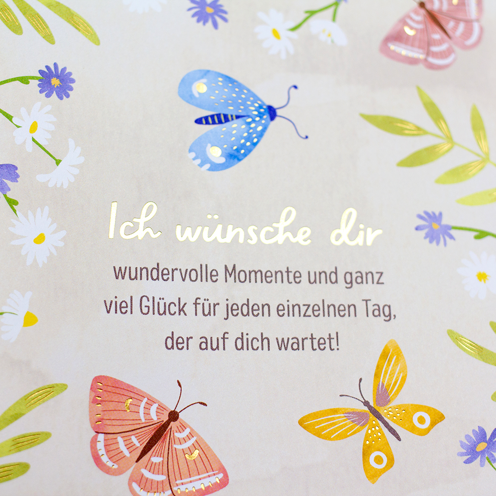 wundervolle Momente und ganz viel Glück für jeden einzelnen Tag, der auf dich wartet!