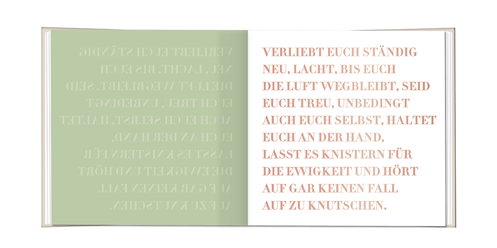 Liebe ist die Zauberkraft, die ohne Absicht wunder schafft! Dieses Buch ist wie ihr: voller Liebe! Lasst euch für immer von ihr verzaubern und feiert sie jeden Tag aufs neue! Alles, alles Liebe!