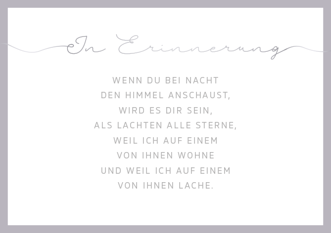 Wenn du bei Nacht den Himmel anschaust, wird es dir sein, als lachten alle Sterne, weil ich auf einem von ihnen wohne und weil ich auf einem von ihnen lache.