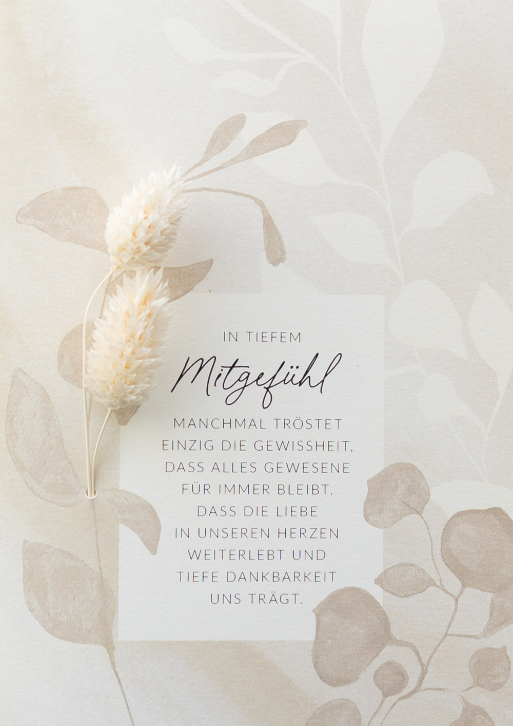 Manchmal tröstet einzig die Gewissheit, dass alles Gewesene für immer bleibt. Dass die Liebe in unseren Herzen weiterlebt und tiefe Dankbarkeit uns trägt.