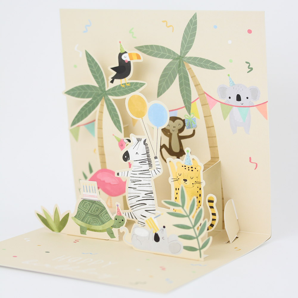 Eine einzigartige 3D-Doppelkarte mit besonderem Überraschungseffekt. Aufklappen, staunen und entdecken.
