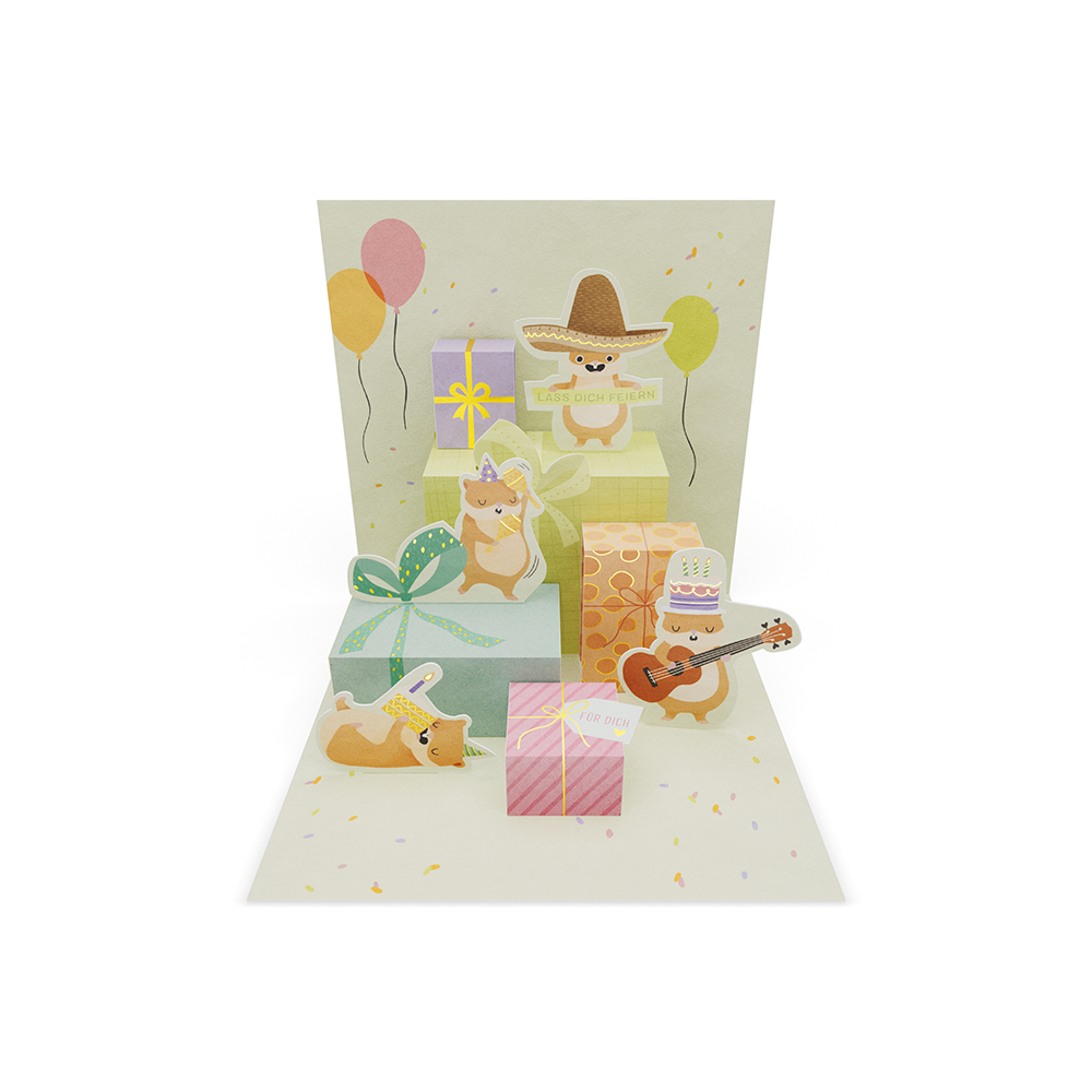 Eine einzigartige 3D-Doppelkarte mit besonderem Überraschungseffekt. Aufklappen, staunen und entdecken.