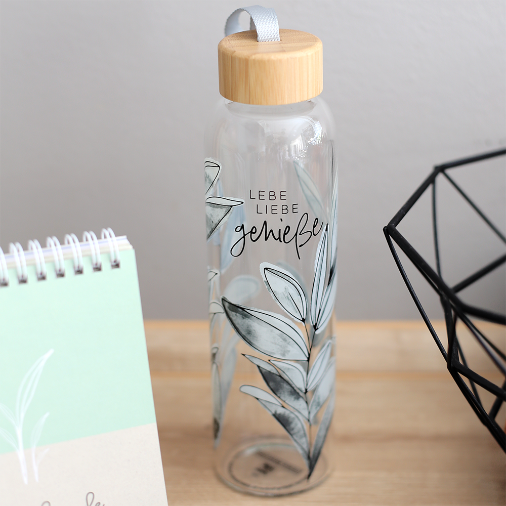 Die praktische Trinkflasche für unterwegs, beim Sport oder im Büro. Das liebevoll gestaltete Design macht dich und deinen neuen Begleiter zum echten Hingucker. So wird dein tägliches Wasser trinken zum stylischen Highlight und du bist durch die Benutzung der wiederverwendbaren Glasflasche freundlich zur Umwelt!