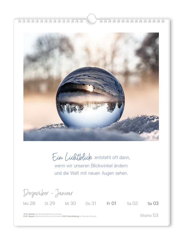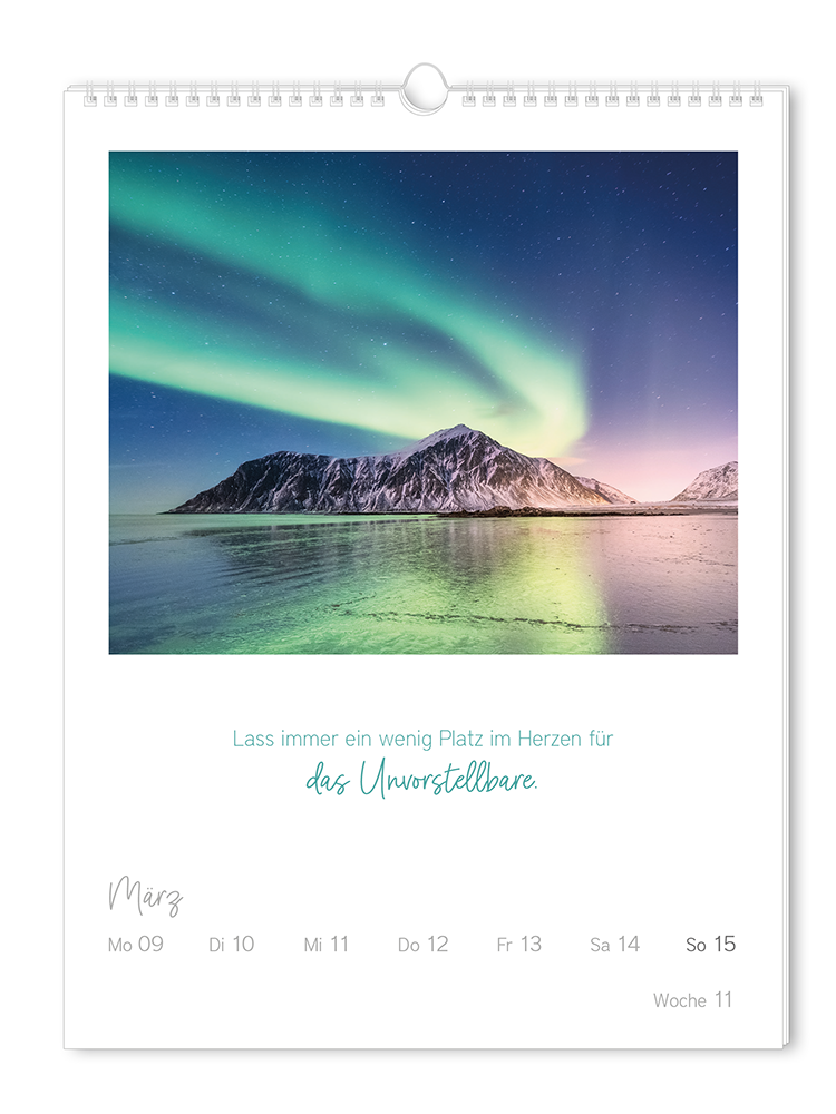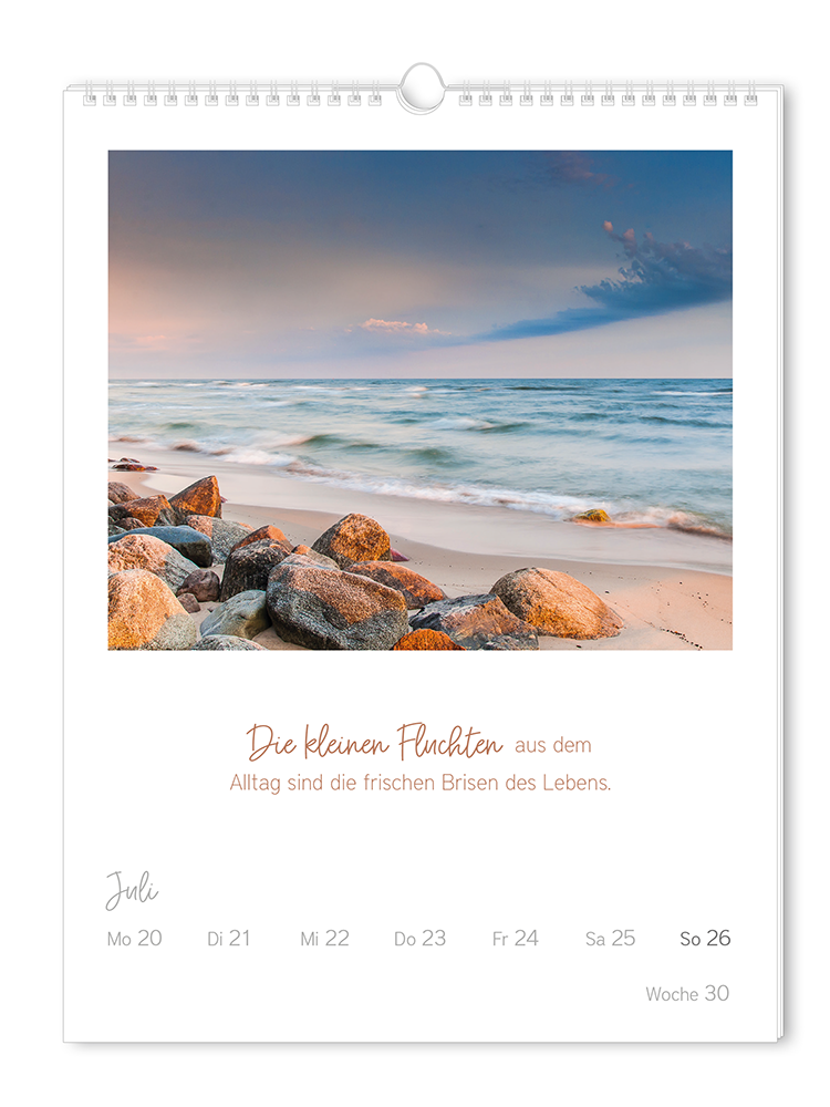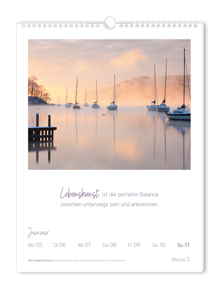 Ein jahr mit unseren besten Klassikern: Der Wochenkalender enthält die 52 Best-of-Motive aus der Grafik Werkstatt mit den schönsten Lebensweisheiten vieler verschiedener Denker, Philosophen und Autoren. Die 52 Aphorismen sind mit ausgewählten Fotografien kombiniert und versprühen wochenweise pure Poesie. Die ideale Ergänzung zum Kalendersortiment und ein Muss für alle Freunde von Ästhetik und Tiefsinn!