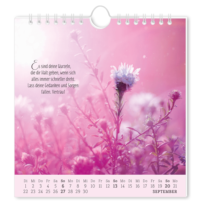 Jeden Tag ein Lächeln, jeden Monat eine Überraschung - das ganze Jahr über Freude: Unsere Kalender verschönern mit lebendigen Motiven und ausgewählten Texten Blatt für Blatt deine vier Jahreszeiten und deine vier Wände.