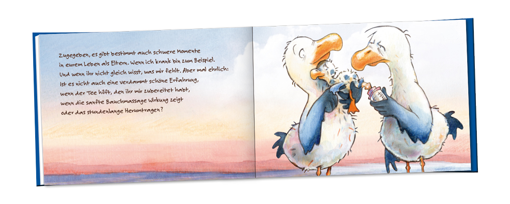 Auf amüsante und anrührende Weise erzählt die kleine Möwe ihren frischgebackenen Eltern, was für ein einzigartiges Wunder es ist, geboren zu werden, warum alle kleinen eine unsichtbare Krone auf dem Kopf tragen und wie sehr sie sich freut, auf der Welt zu sein.