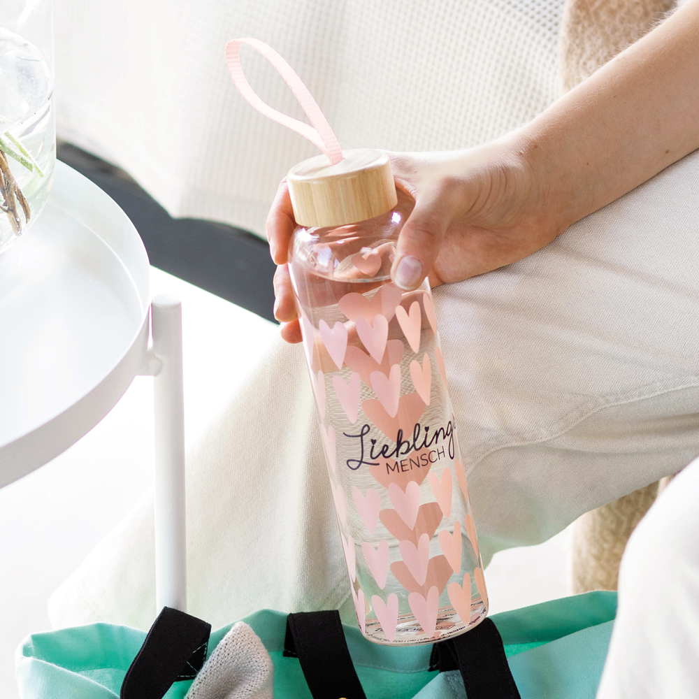 Die praktische Trinkflasche für unterwegs, beim Sport oder im Büro. Das liebevoll gestaltete Design macht dich und deinen neuen Begleiter zum echten Hingucker. So wird dein tägliches Wasser trinken zum stylischen Highlight und du bist durch die Benutzung der wiederverwendbaren Glasflasche freundlich zur Umwelt!
