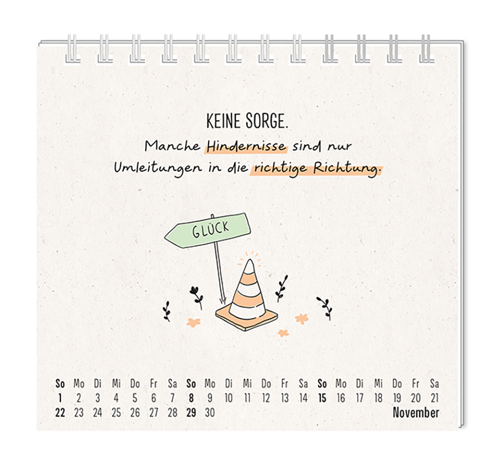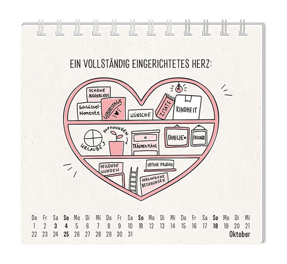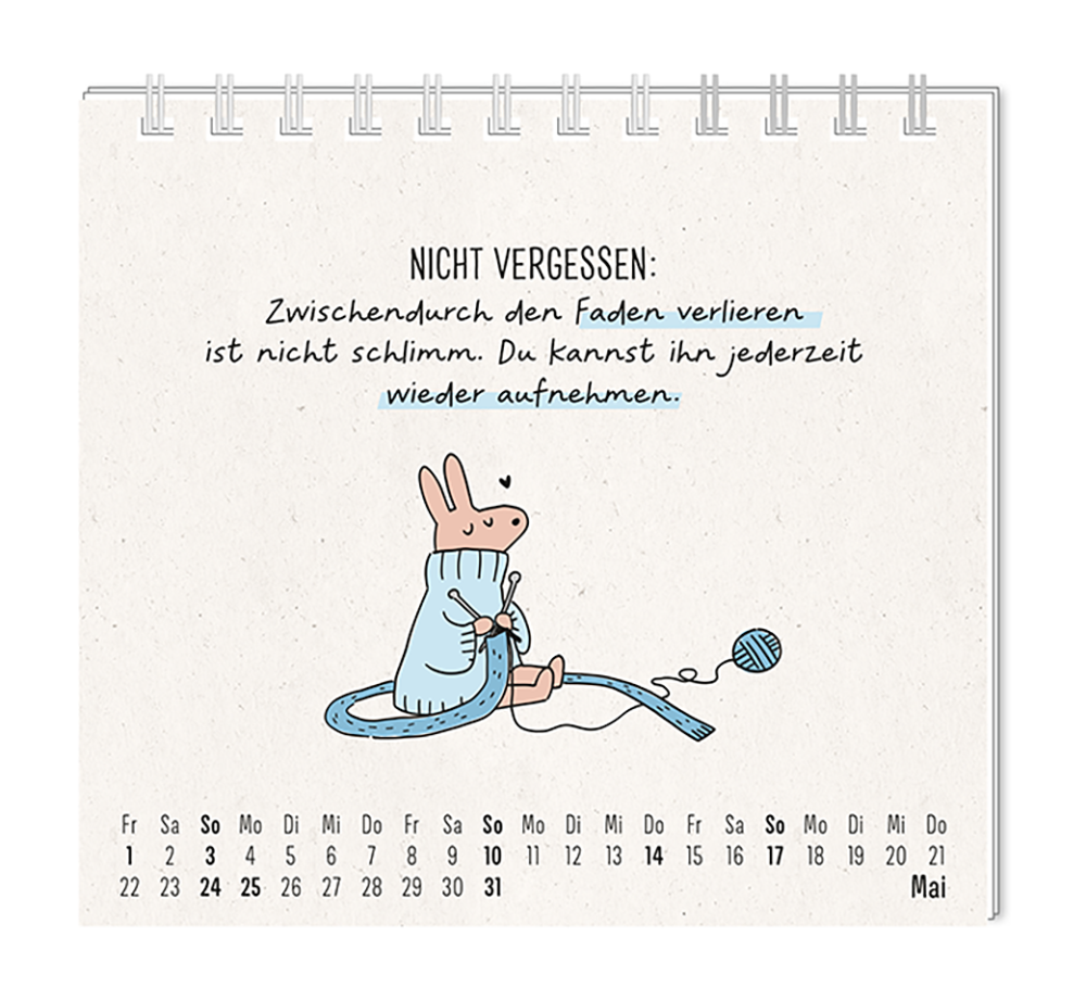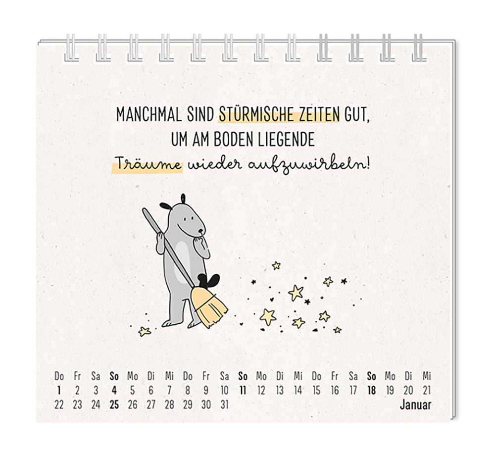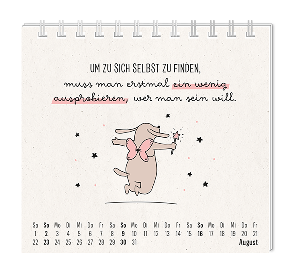 Dieser kleine Tischkalender, versprüht Monat für Monat ganz viel Lebens- und Farbenfreude. Ob Vintage oder Wortschätzchen – jeder von unseren Mini-Kalender schenkt eine Extraportion Glück. Inklusive einer Jahresübersicht und der wichtigsten Feier- und Festtage.