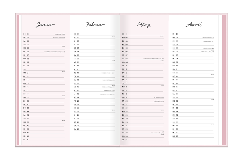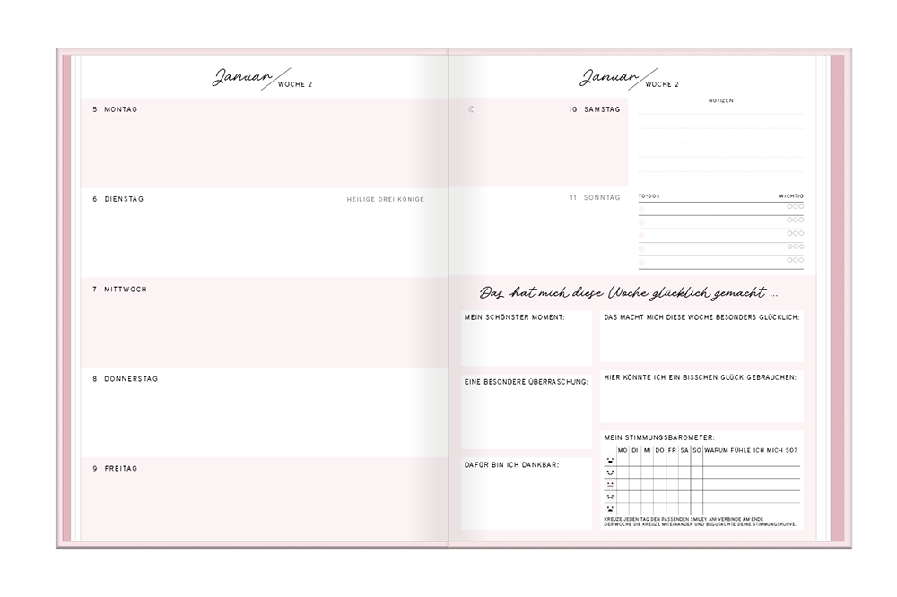 Achtsam durch das Jahr und jeden Monat eine neue Challenge? Gewohnheiten tracken oder Gefühlslagen beleuchten? Mit dem Lady-Terminplaner lassen sich Woche für Woche kleine und große Momente dokumentieren.