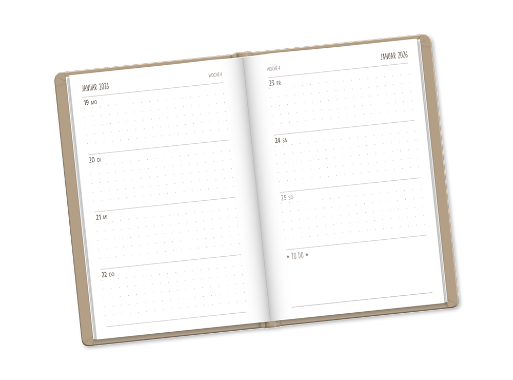 Diese Variante im natürlichen Leinen-Look ist ein eleganter Begleiter durch das neue Jahr. Kunstvoll designed und wundervoll veredelt, ein echtes Lieblingsstück! Jede Kalenderwoche ist übersichtlich auf einer Doppelseite dargestellt. Außerdem bietet der Timer Platz für Notizen, To-do-Listen und all die Dinge, die dir wichtig sind.
