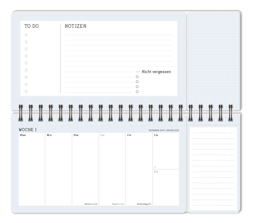 Ein Wochenplaner für das Jahr, in dem all deine Termine, To-dos und Notizen Platz finden. Organisiere mit diesem kleinen Schreibtisch-Helden auf besonders elegante Weise deinen Alltag!