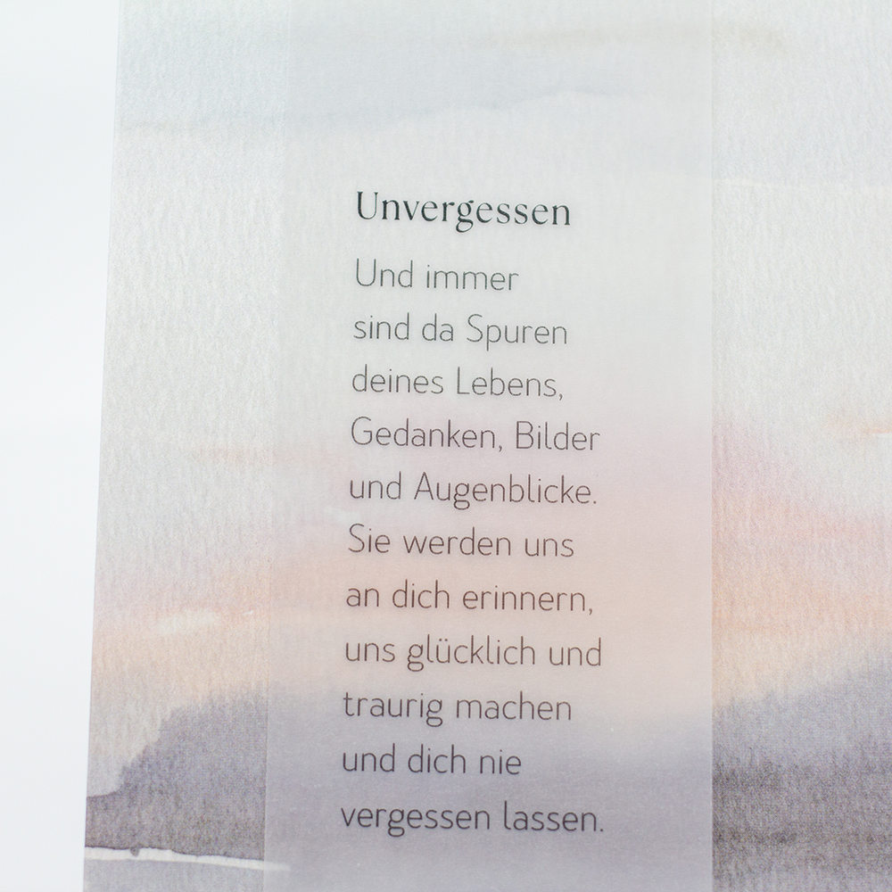 Auf einfühlsame Weise Trost spenden und Anteil nehmen. Unsere Trauer Karten drücken mit liebevoll gewählten Worten, einer dezenten Gestaltung, filigranen Illustrationen und besonderen Veredelungen aufrichtiges Mitgefühl aus.