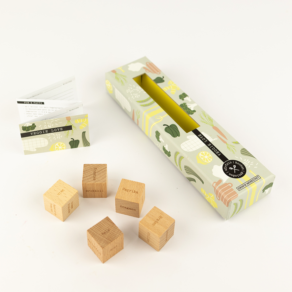 Lust auf besondere Veggie-Kreationen? Schnapp dir die 5 Würfel und lass dich von unzähligen tollen Zutaten-Kreationen überraschen. Würfeln, kochen, genießen - Guten Appetit!