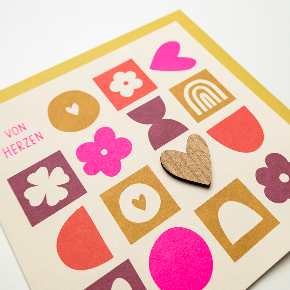 Natur pur, Design vom Feinsten und ganz besondere Botschaften: Diese Karten-Kollektion weckt mit hochwertigen Holz-Applikationen in Form von filigranen gelaserten Schriftzügen und Motiven pure Holzliebe. Kreativ kombiniert mit originellen Designs und einer Farbpalette aus sanften Naturtönen - einfach "astrein"!