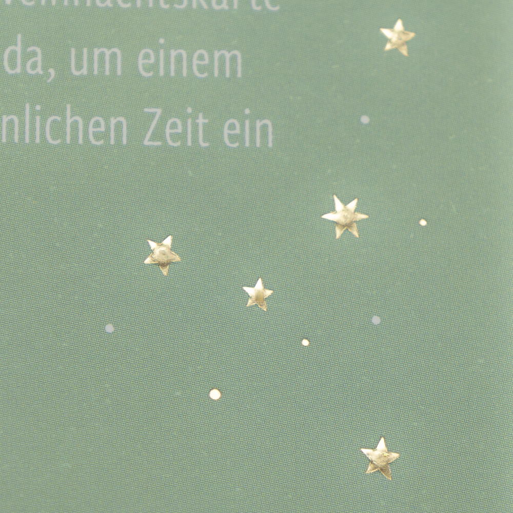 "Frohe Weihnachten!" Mehr noch ist es eine papiergewordene Umarmung und Überbringer von lieben Wünschen aus tiefstem Herzen. Eine Weihnachtskarte sagt "ich denk an dich" und ist dafür da, um einem besonderen Menschen in dieser besinnlichen Zeit ein Lächeln ins Gesicht zu zaubern.