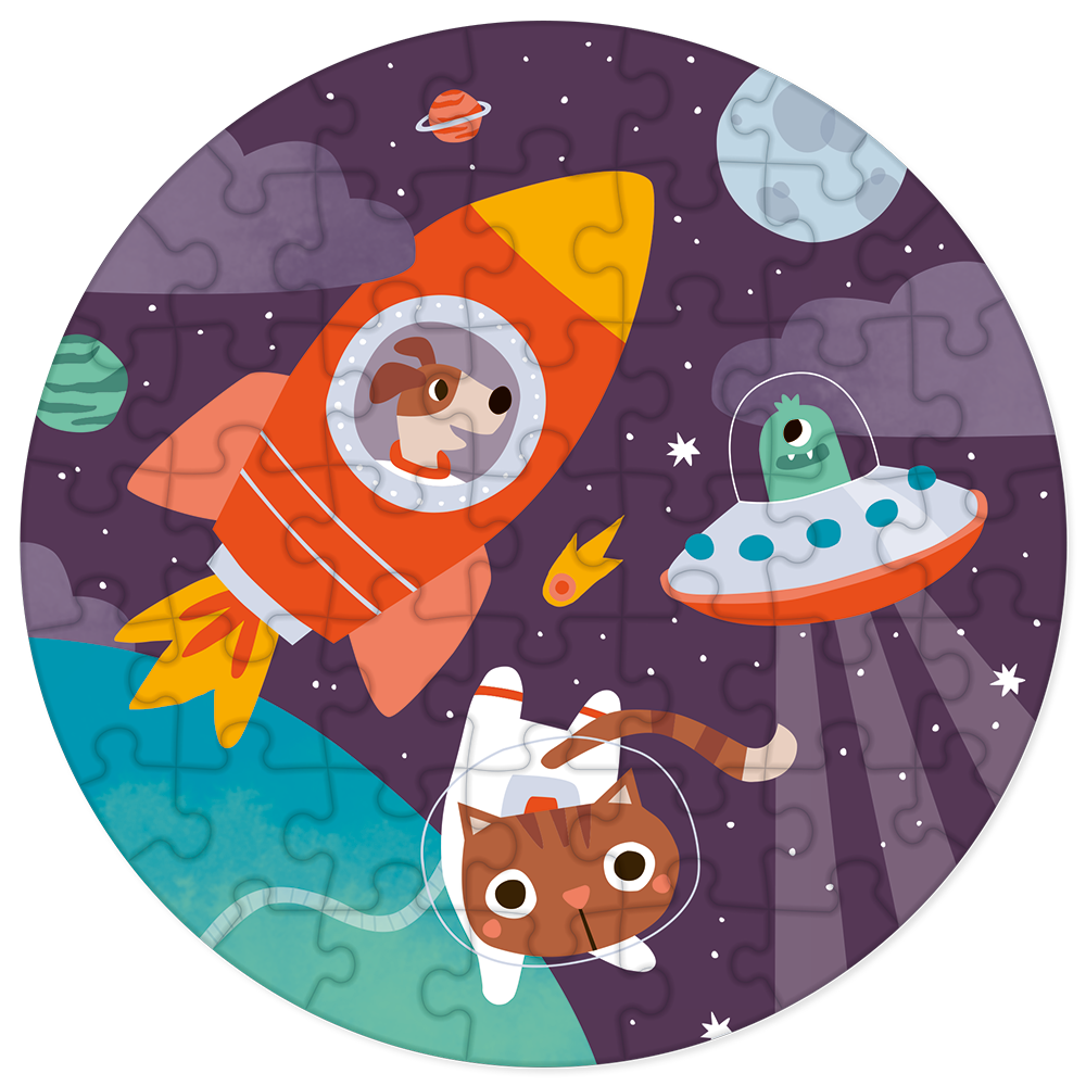 Bezaubernder Puzzlespaß im runden Design. Voller Fantasie und fröhlicher Farben lädt dieses liebevoll illustrierte Kindermotiv kleine Entdecker zum Puzzlen ein. Viel Freude beim Tüfteln!