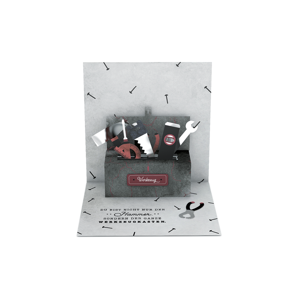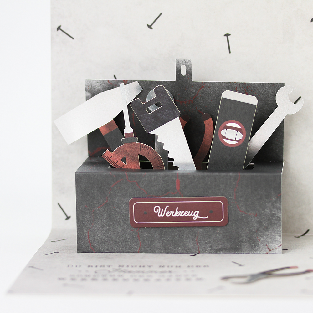 Eine einzigartige 3D-Doppelkarte mit besonderem Überraschungseffekt. Aufklappen, staunen und entdecken.