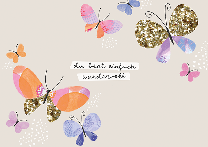 Jede Karte ist mit zusätzlichen „Highlights" aufgewertet, diverse Applikationen, Prägungen und Veredelungen machen diese Kartenserie zu der hochwertigsten Karte in unserem Sortiment!