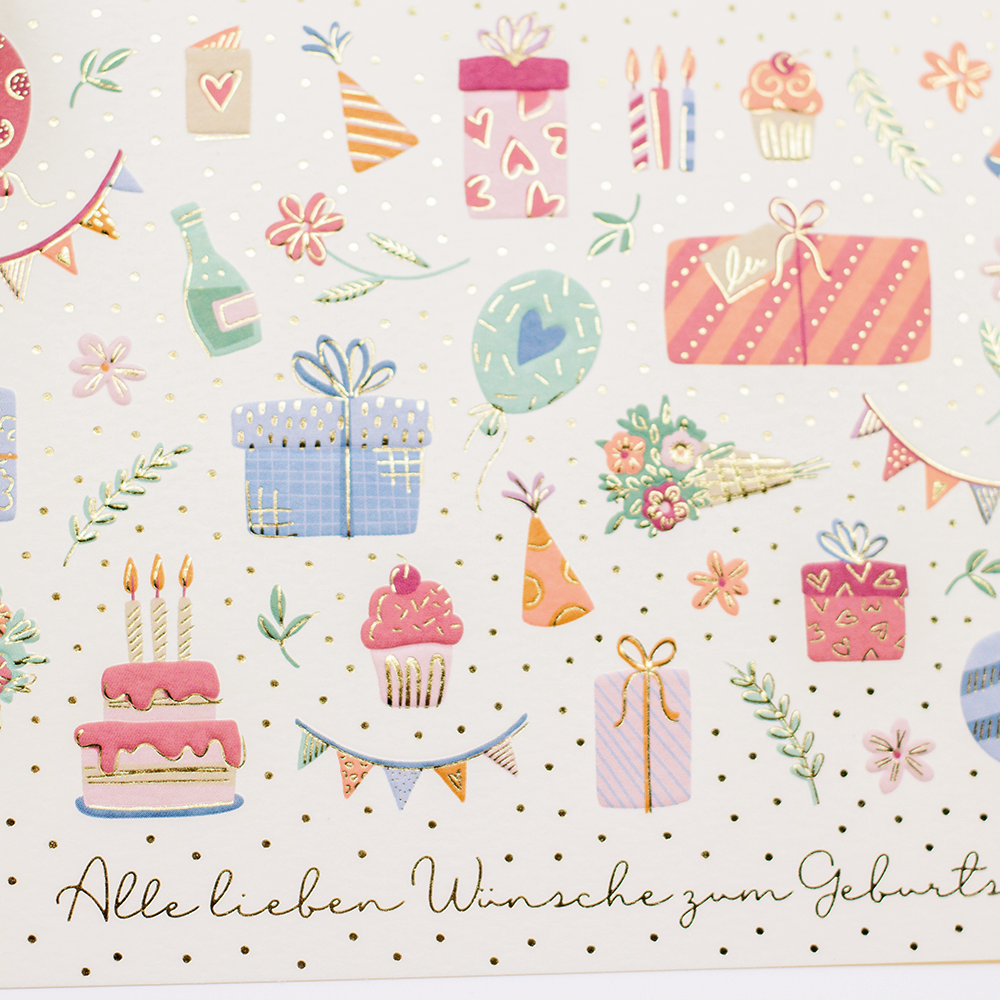 Unsere Serie ist für alle, die das ganz Besondere lieben: jede Karte ist ein echtes "Lieblingsstück", ein Unikat, ein kleines Kunstwerk! Filigranste Goldveredelungen, partielle Prägungen, von Hand gezeichnete Illustrationen und Kollagen auf fühlbar hochwertigem Naturpapier - die Lieblingsstücke geben dem Begriff "Liebe zum Detail" eine ganz neue Bedeutung! Verspielte Motive zählen genauso zu der neuen Serie wie elegante Kreationen, detailreiche Designs ebenso wie reduzierte Karten ohne Text.