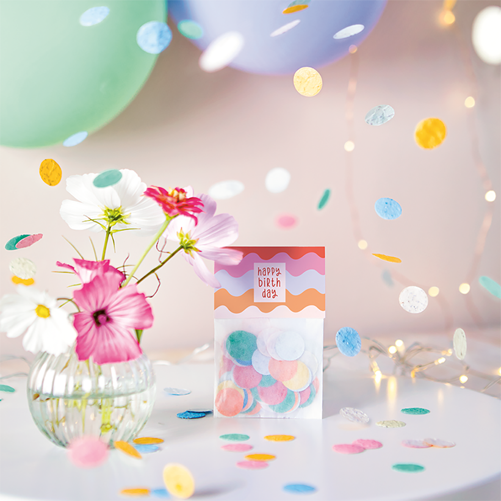 Umweltfreundliches Papierkonfetti mit Mehrfachnutzen: erst streuen, dann einpflanzen