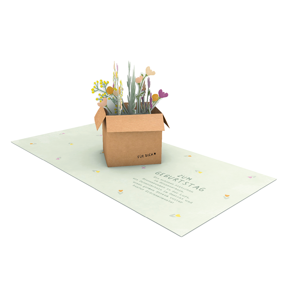 Eine einzigartige 3D-Doppelkarte mit besonderem Überraschungseffekt. Aufklappen, staunen und entdecken.