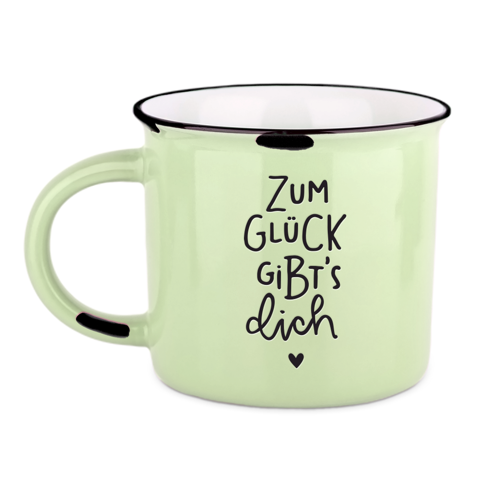 In diesen besonders großen Becher im stylischen Emaille-Look passt extra viel von deinem Lieblingsgetränk hinein - für viele gluck, gluck, glückliche Genussmomente